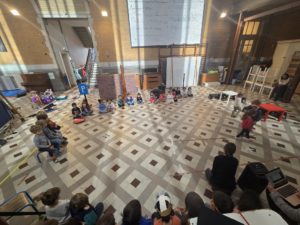 En ce moment, dans la grande salle, ça répète, ça construit, ça peint, ça imagine. Les enfants préparent leur spectacle de théâtre avec une énergie folle. Certains s’entraînent à jouer leur rôle devant les autres, bien concentrés au milieu de la scène. D’autres s’occupent des décors : un immense cœur orange et rouge prend forme…