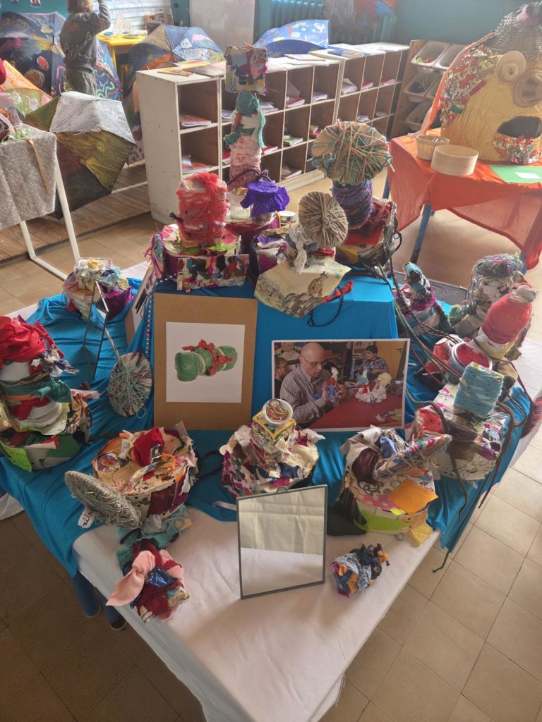 Dans le cadre d’un projet mené avec Christine Cabaux, les enfants de 3e maternelle ont réalisé une exposition pour présenter leurs créations. À la fin du projet, ils ont invité leurs parents ainsi que leurs parrains et marraines de 6P à venir découvrir leur travail.