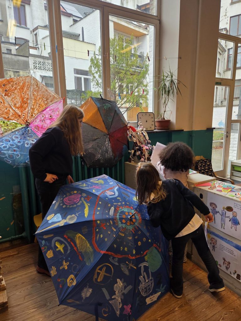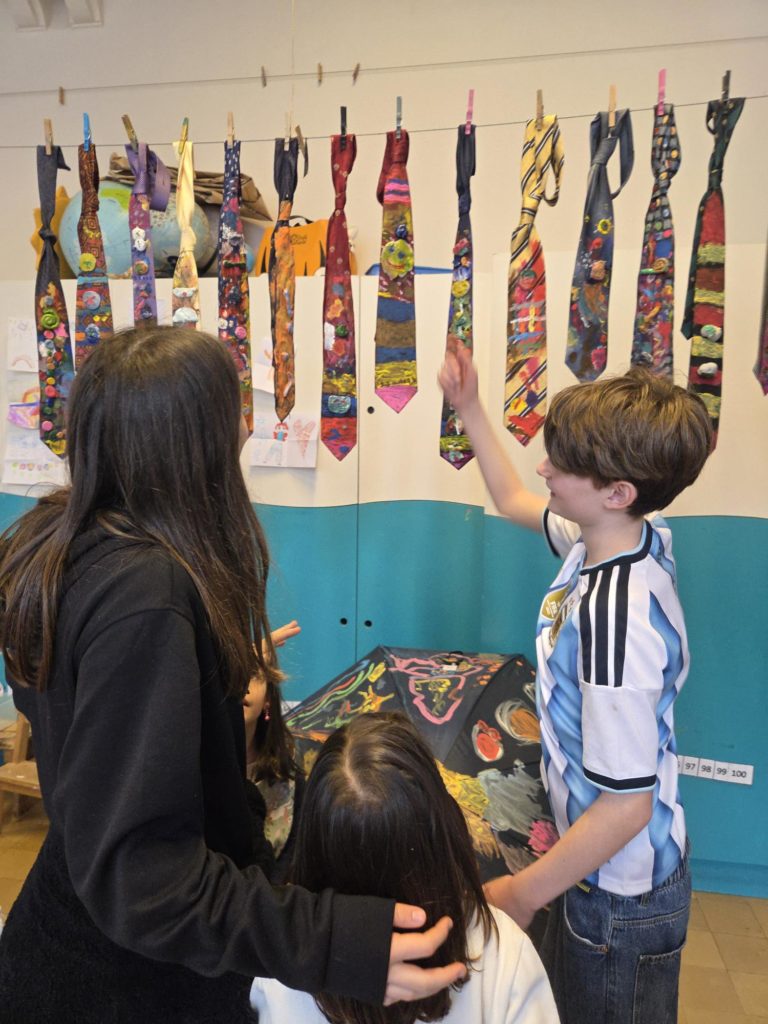 Lors de l’exposition, les visiteurs ont pu découvrir des chapeaux originaux, un grand monstre qui avale les cauchemars, des cravates que les enfants ont imaginées et customisées, des parapluies transformés en boucliers anti-cauchemars, ainsi que de nombreuses autres créations pleines de couleurs et d’imagination.